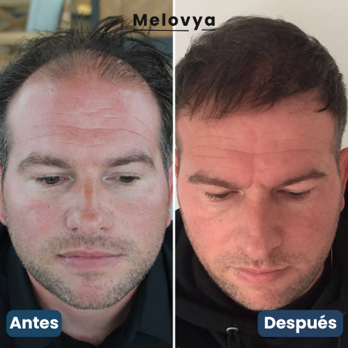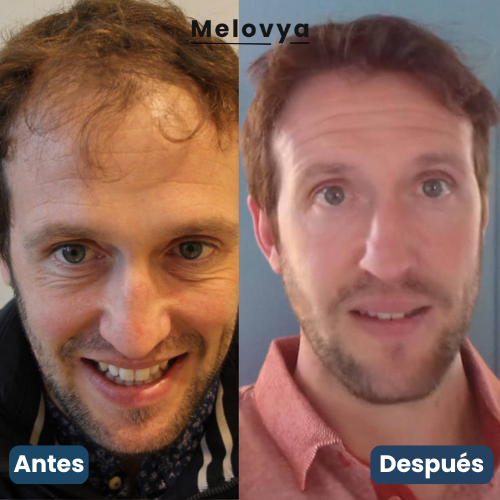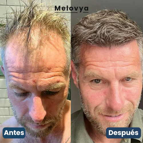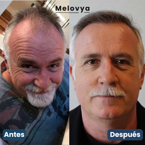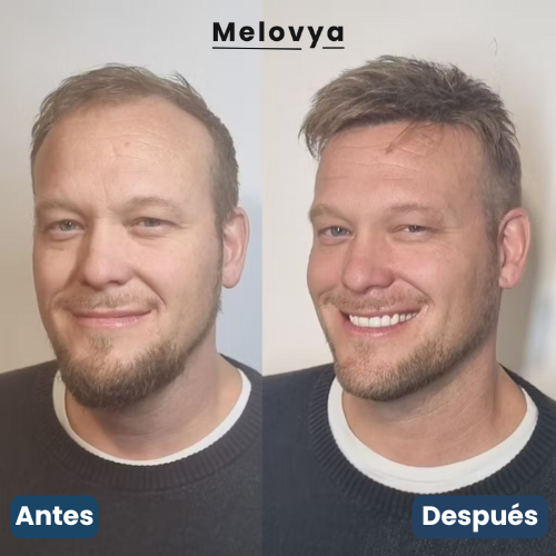 La verdad, veía cómo mi pelo se iba echando para atrás en la frente y me agobiaba bastante. Pensaba que nada iba a funcionar… pero con Melovya noté el cambio. Mi cabello se ve con más densidad y ahora me siento mejor cuando me miro al espejo.
